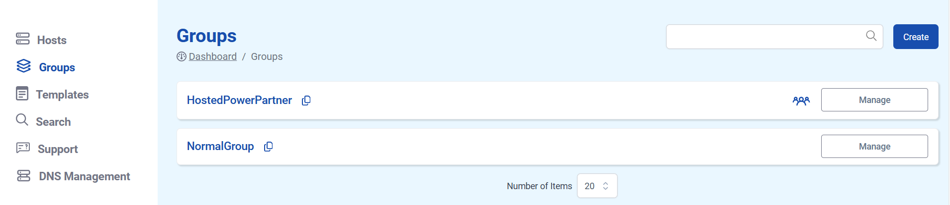 Open the Groups tab to efficiently manage settings without the need to make changes individually for each user or project. Create partner groups, which enables you to provide SSH key access to multiple employees across different end user or partner environments.